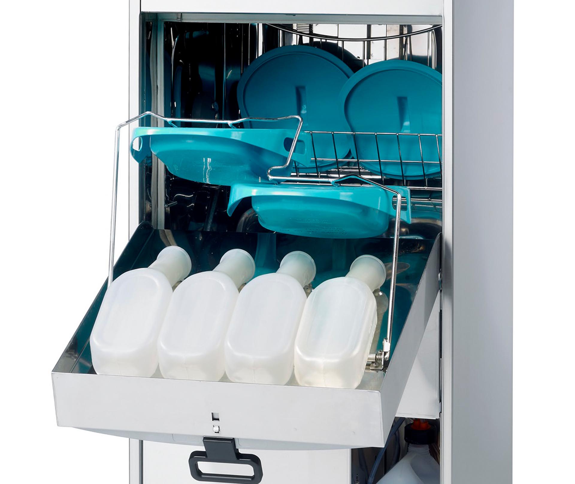 The Deko 190 GT has a large wash chamber and capacity for automatic emptying and processing of 2 bedpans with lids and 4 urine bottles simultaneously.