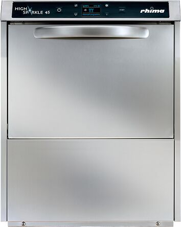 High Sparkle 45 glass washer when connected to Rhima’s High Sparkle, has a scientifically designed wash and rinse system to allow optimum flow and pressure. This ensures sparkling results especially for glassware and cutlery, all the time every time. These brilliant results are irrespective of incoming water pressure, temperature or quality. No polishing is required for glasses at all.