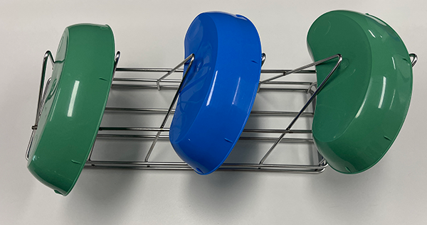 These are medical use racks. These racks are for washing and disinfecting kidney bowls in the Deko 190 washer disinfectors. They allow for washing of multiple kidney dishes at once.