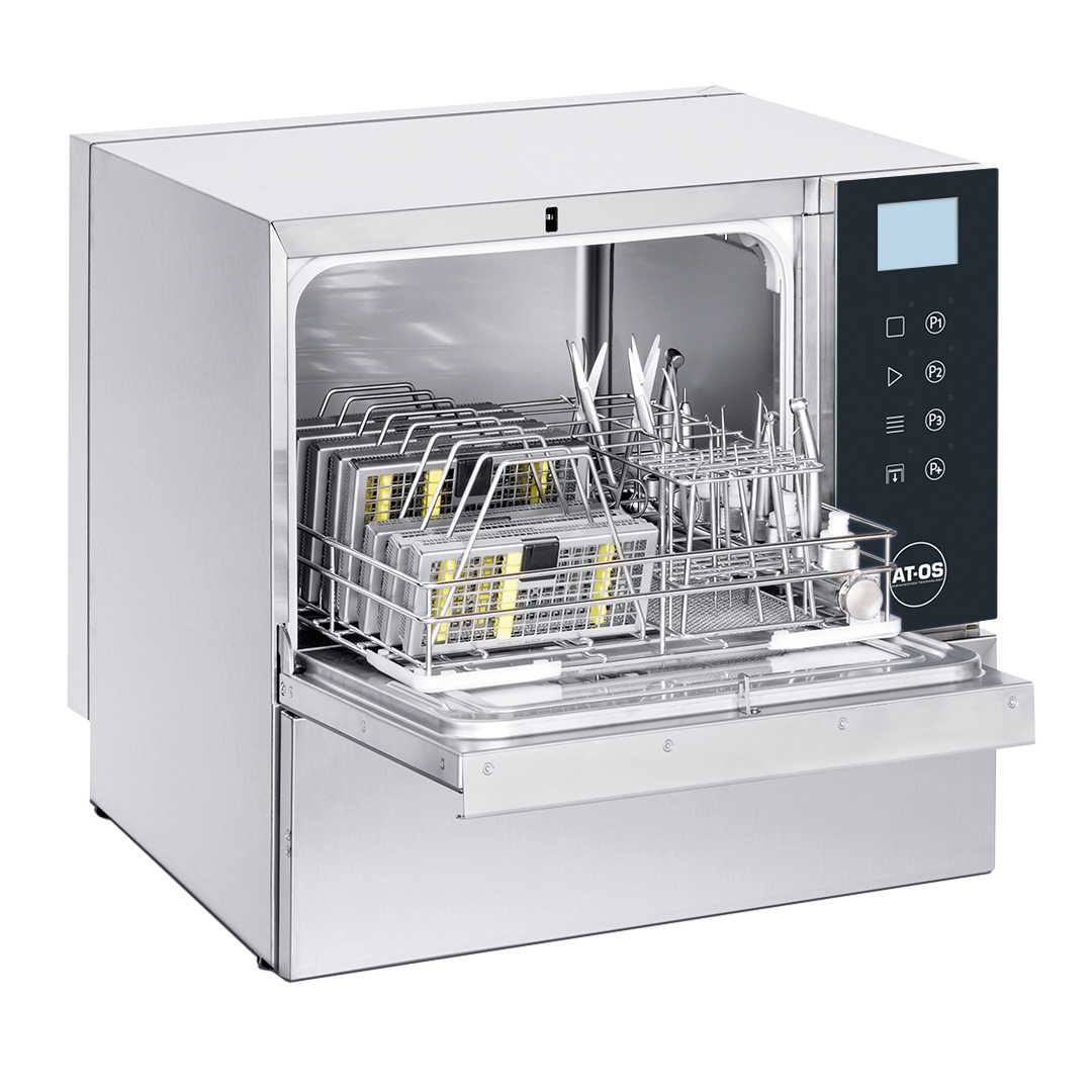 Instrument washer disinfector equipped with a tempered double glass manual door, perfect for small hospital wards or dental clinics.