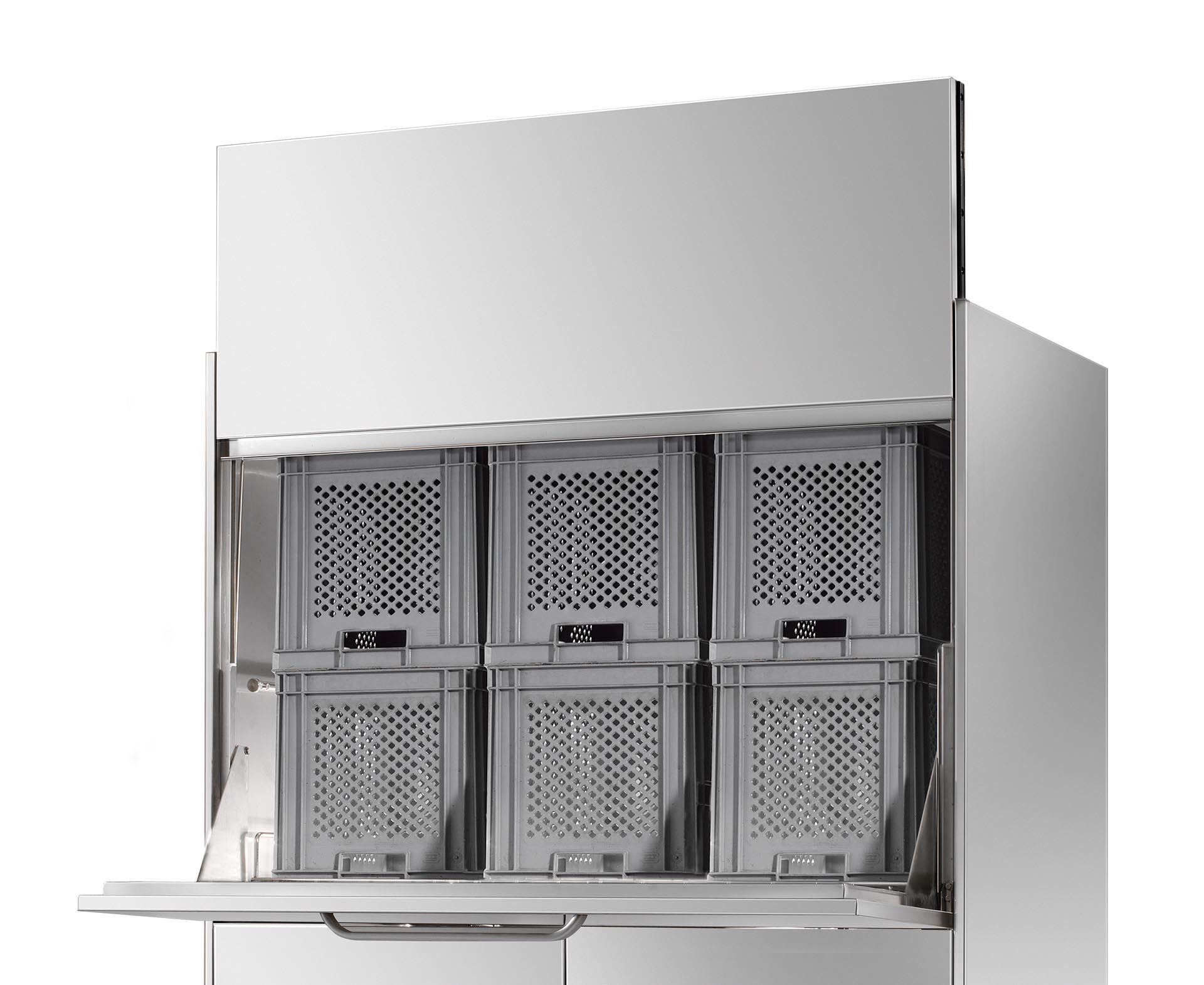 Heat Recovery Unit means the moist air is drawn directly out of the machine when the door is closed, and used for pre-heating the cold water supplied up to around 50°C. As a result, the energy required to reach the final rinse temperature (approx. 85°C) is dramatically reduced. With the RP-4 you can save 5.5 kw/h.