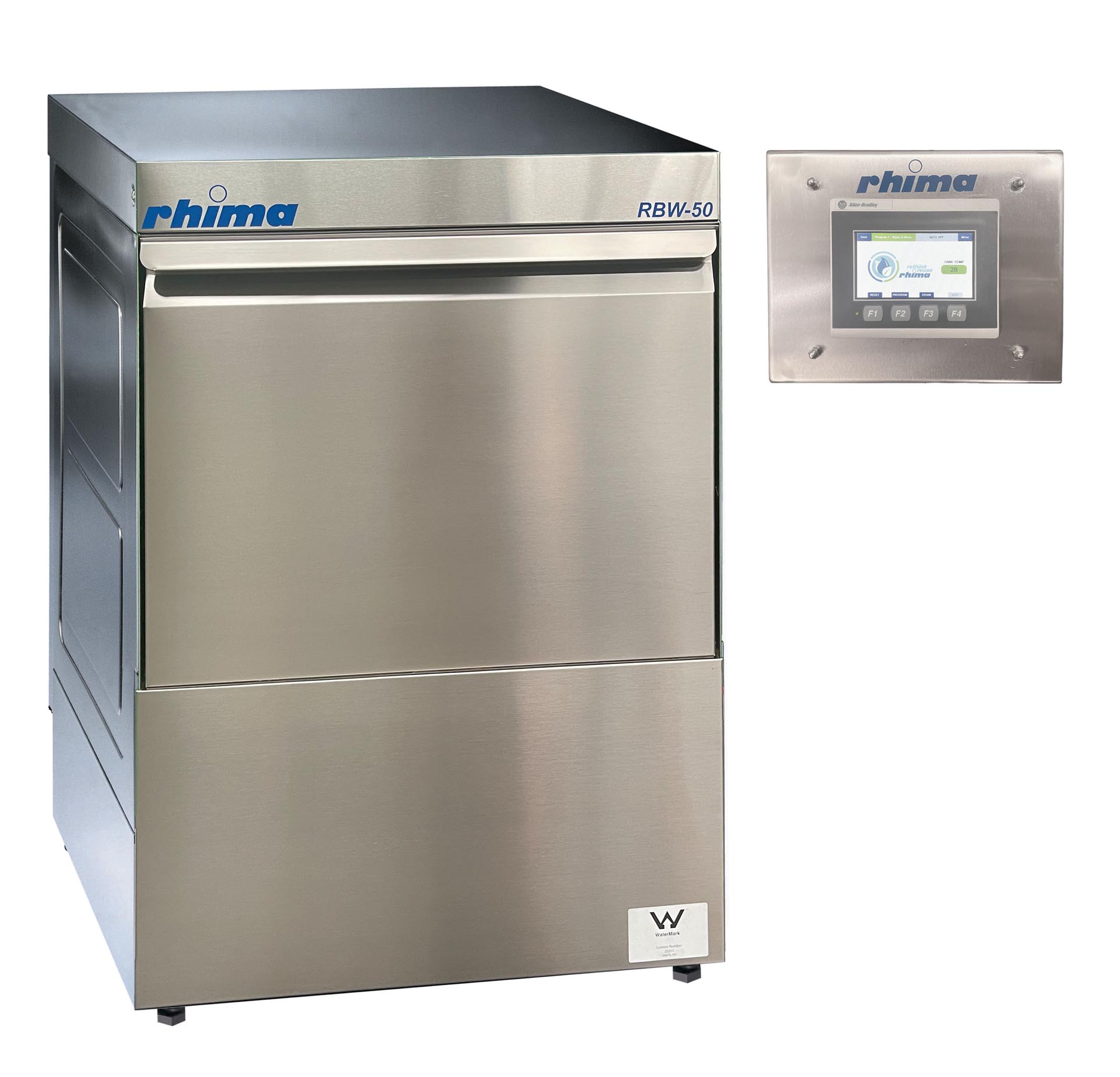 The newly designed RBW50U underbench bottle washer by Rhima improves hygiene and cleanliness as well as improved efficiency. For example if glass milk bottles are not cleaned and sanitised properly or at all and milk residue remains, this creates a food safety hazard for customers and the dirty bottles have to be thrown out due to their contamination risk.