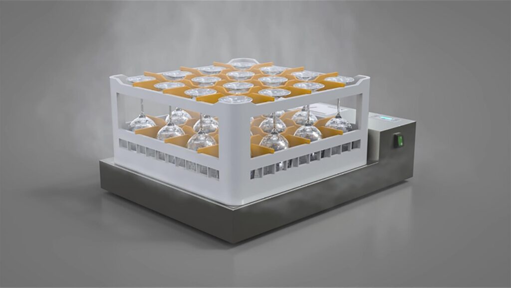 We offer smaller dryers, ideal for 500×500 racks, typically used in industries like wineries, where glassware needs to be carefully dried. These compact dryers blow both cold and hot air, making them versatile and effective for drying a variety of items quickly and efficiently. Whether you need to dry glassware or other small items, these dryers provide reliable performance in environments where space and drying time are critical.